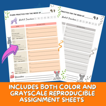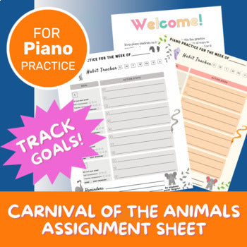 Keep your piano students on track for success with this weekly assignment sheet with a Carnival of the Animals Theme.