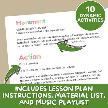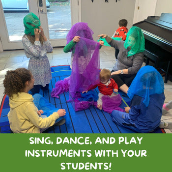 This easy-to-teach lesson plan requires simple materials - generally egg shakers, scarves, a Bluetooth speaker, and an optional piano, keyboard, ukulele, or guitar. All songs can also be sung a cappella if you don't play an instrument. You'll get activities themed for the lesson plan and instructions on how they should be performed, a complete list of songs to add to your playlist and any sheet music needed, complete with chords and notation. You can teach this lesson plan without an extensive musical background yourself!