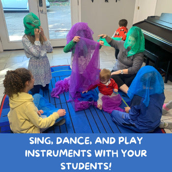 This easy-to-teach lesson plan requires simple materials - generally egg shakers, scarves, a Bluetooth speaker, and an optional piano, keyboard, ukulele, or guitar. All songs can also be sung a cappella if you don't play an instrument. You'll get activities themed for the lesson plan and instructions on how they should be performed, a complete list of songs to add to your playlist and any sheet music needed, complete with chords and notation. You can teach this lesson plan without an extensive musical background yourself!