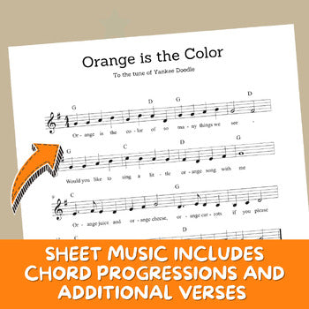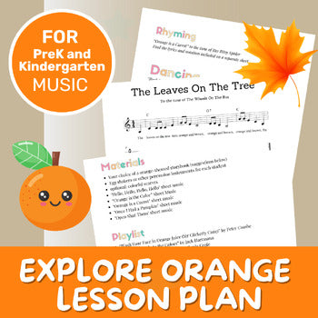 Attention Pre-K and Kindergarten Teachers! If you're looking for a unique and engaging way to teach colors, check out our done-for-you exploring the color orange music lesson plan! The plan includes ten fun and interactive musical activities, all focused on identifying and recognizing common things that are orange. It is a part of our Exploring the Colors Through Music series. While these activities are perfect for younger students, kids in lower elementary grades can also benefit. Even if you don't have a musical background, you can still follow these straightforward plans with ease!