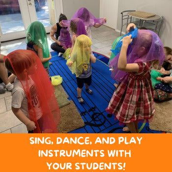 This easy-to-teach lesson plan requires simple materials - generally egg shakers, scarves, a Bluetooth speaker, and an optional piano, keyboard, ukulele, or guitar. All songs can also be sung a cappella if you don't play an instrument. You'll get activities themed for the lesson plan and instructions on how they should be performed, a complete list of songs to add to your playlist and any sheet music needed, complete with chords and notation. You can teach this lesson plan without an extensive musical background yourself!