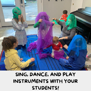 This easy-to-teach lesson plan requires simple materials - generally egg shakers, scarves, a Bluetooth speaker, and an optional piano, keyboard, ukulele, or guitar. All songs can also be sung a cappella if you don't play an instrument. You'll get activities themed for the lesson plan and instructions on how they should be performed, a complete list of songs to add to your playlist and any sheet music needed, complete with chords and notation. You can teach this lesson plan without an extensive musical background yourself!