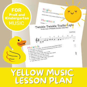 Attention Pre-K and Kindergarten Teachers! If you're looking for a unique and engaging way to teach colors, check out our done-for-you exploring the color yellow music lesson plan! The plan includes ten fun and interactive musical activities, all focused on identifying and recognizing common things that are yellow. It is a part of our Exploring the Colors Through Music series. While these activities are perfect for younger students, kids in lower elementary grades can also benefit. Even if you don't have a musical background, you can still follow these straightforward plans with ease!