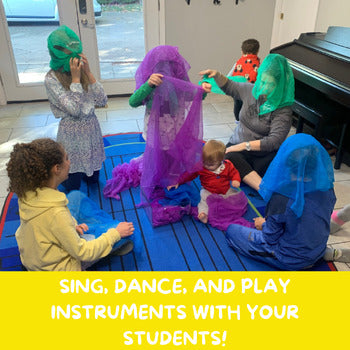 This easy-to-teach lesson plan requires simple materials - generally egg shakers, scarves, a Bluetooth speaker, and an optional piano, keyboard, ukulele, or guitar. All songs can also be sung a cappella if you don't play an instrument. You'll get activities themed for the lesson plan and instructions on how they should be performed, a complete list of songs to add to your playlist and any sheet music needed, complete with chords and notation. You can teach this lesson plan without an extensive musical background yourself!
