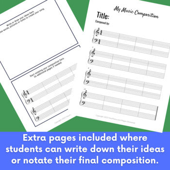 Beginning piano students aren't expected to be expert music transcribers, so notating the composition is optional. Some students may enjoy playing around with the guidelines on the worksheet and creating something new each time. Others might want to jot down some of their notes or ideas on plain paper. Of course, writing with formal notation is an excellent task to take on and staff paper is included for students who would like to notate their piece.