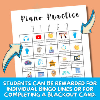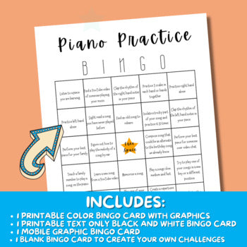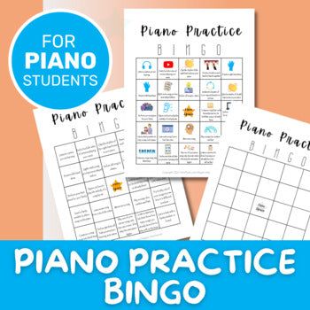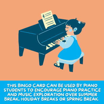 This bingo card can be used by piano students to encourage piano practice and music exploration over summer break, holiday breaks, or spring break. It also works well as an additional practice challenge to accompany a routine piano practice assignment.