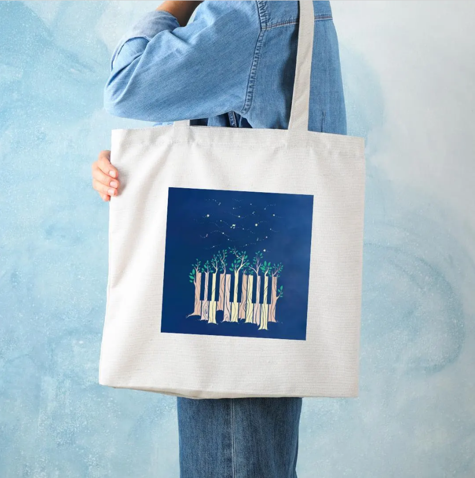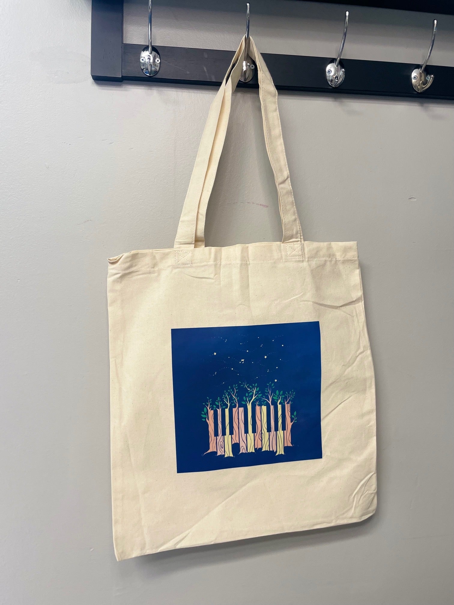 This 15" x 16" tote bag is perfect to help piano students carry and keep track of their piano books and assignments, It also pairs well with our Piano Practice Pins, allowing students to have a canvas to display their trophies on!
