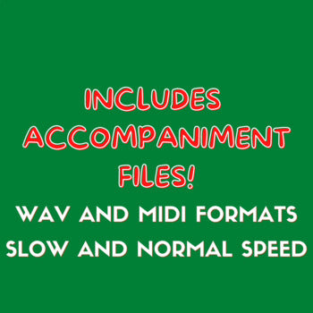 This purchase includes high-quality printable PDFs of the song and audio accompaniment in both WAV and MIDI format, at normal and slow speeds.
