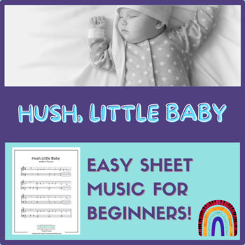 "Hush Little Baby" is a perfect beginner sheet music piece. This is meant for beginning piano players who are working in the C position. This purchase includes a high-quality printable PDF of the song and audio accompaniment in both WAV and MIDI format, at normal and slow speeds.